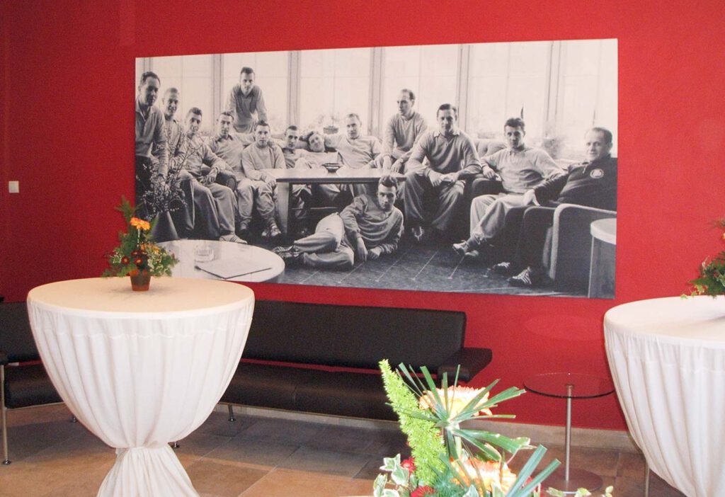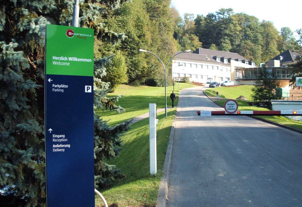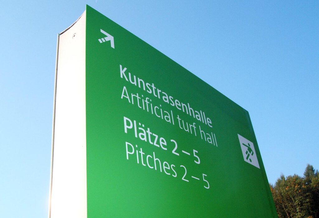 Im Rahmen der allgemeinen Modernisierungsmaßnahmen und noch vor der Überarbeitung des Corporate Designs haben wir auch die Raum- und Gebäudekennzeichnung der gesamten Sportschule entwickelt und die modernisierten Innenraumbereiche zusätzlich durch große monochrome Leinwandprint historischer Sportfotos aufgewertet. Im Außenbereich kommen diverse Pylone zum Einsatz, im Innenbereich Türschilder, Wandtafeln und Wandbeschriftungen. Die verschiedenen Bereiche und Hallen der Sportschule werden dabei dem eindeutigen Farbklima des visuellen Erscheinungsbildes zugeordnet.