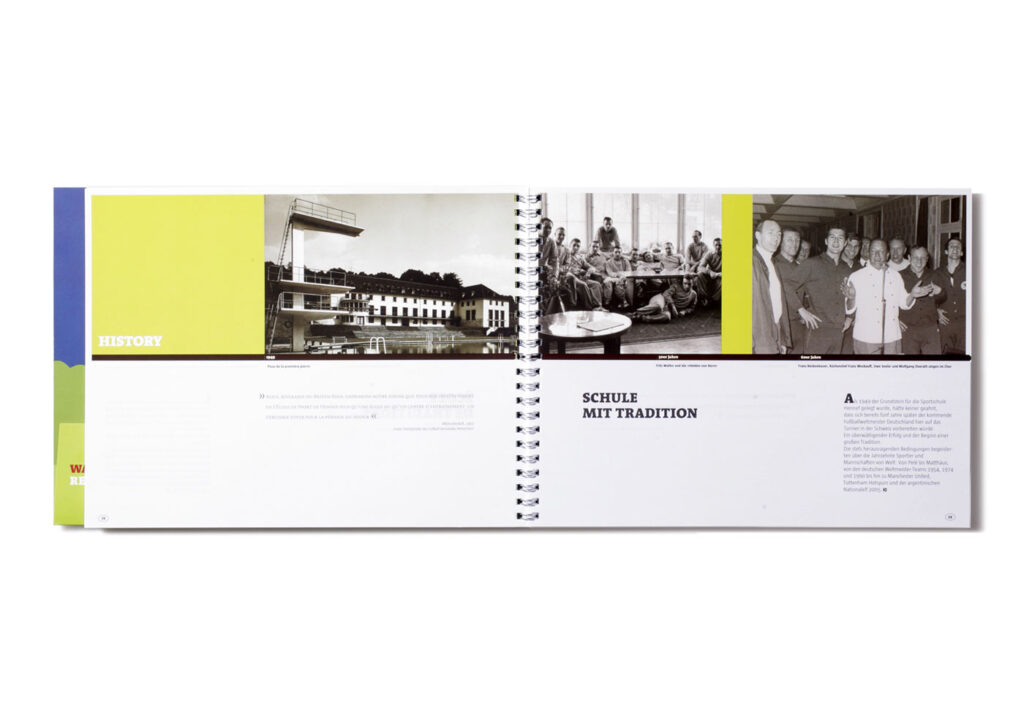 Nachdem wir als Agentur (erst 804 GRAPHIC DESIGN, später stay golden GmbH) die traditionsreiche Sportschule bereits seit 2005 in allen Fragen der Unternehmenskommunikation betreuten, hatte sich der damalige Geschäftsführer Andreas Eichwede († 2013) entschlossen, auch den grundlegenden Gestaltungskonstanten rund um das visuelle Erscheinungsbild ein Facelift zu unterziehen. Die Aufgabe bestand in der Entwicklung einer eigenständigen und aussagekräftigen Wortbildmarke.
