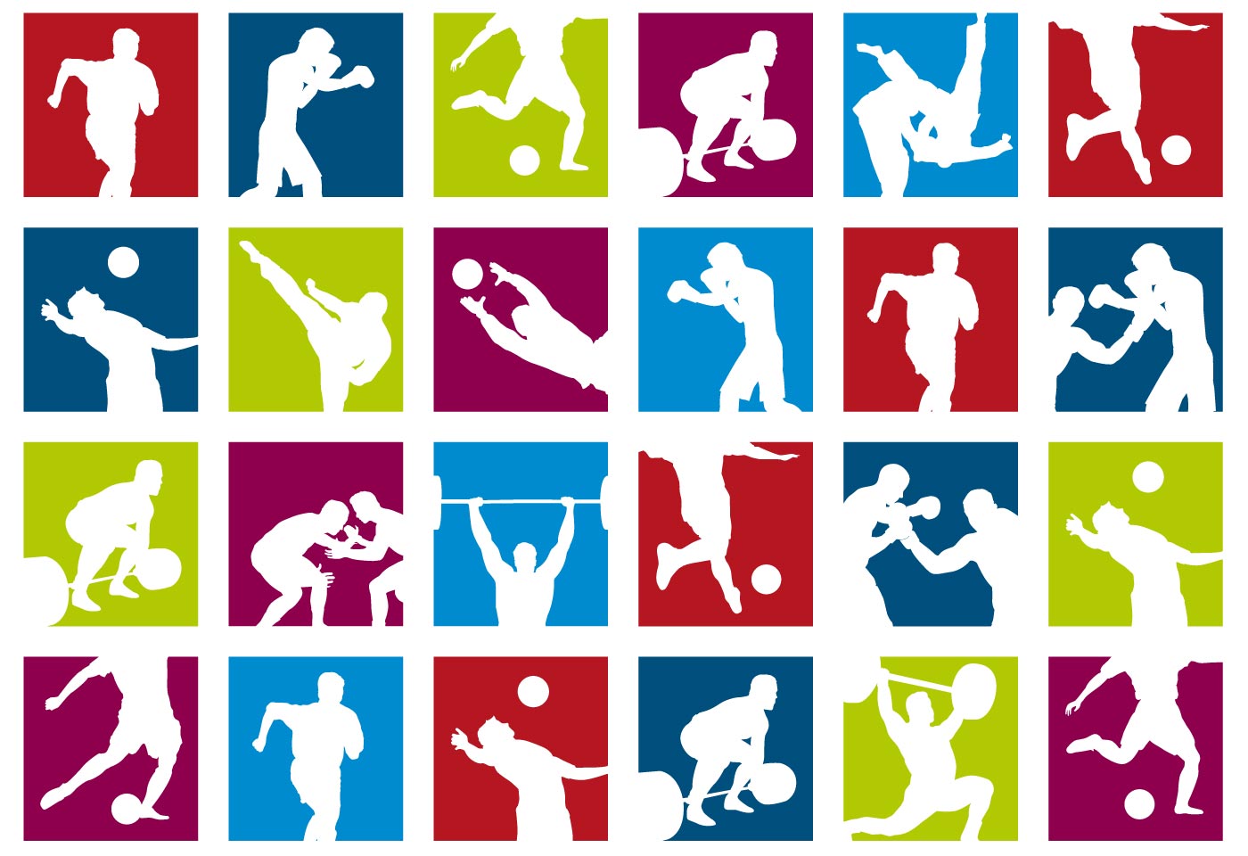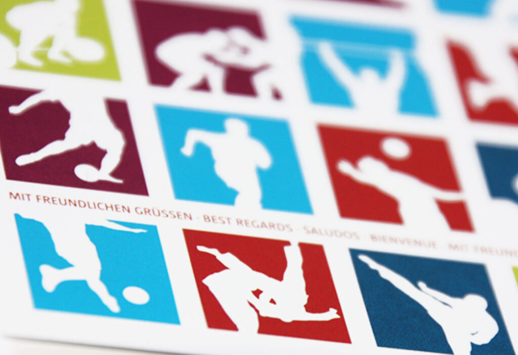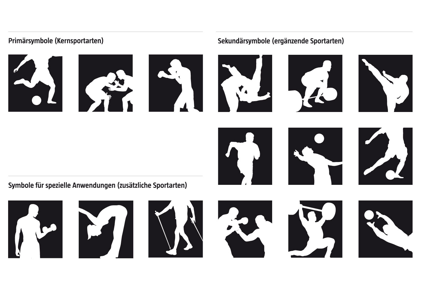 Daraufhin habe ich einen Figuren- und Logokanon entwickelt, der es ermöglicht, unterschiedlichste Sportarten darzustellen. Dabei bleiben die Farbwelt innerhalb eines definierten Farbraums sowie Anordnung und Anzahl der Figuren modular flexibel – der Figurenkanon kann jederzeit weiterentwickelt und ergänzt werden.
