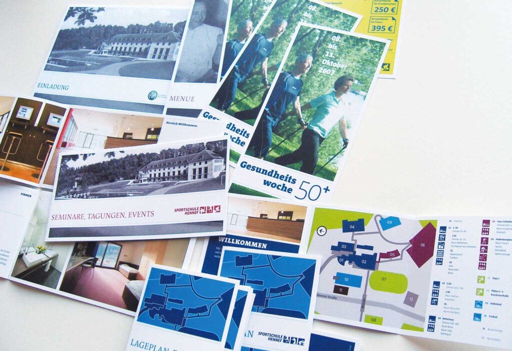 Im Verlauf der mehrjährigen gemeinsamen Zusammenarbeit haben wir viele Kommunikationsmedien optimiert und an das neu entwickelte Corporate Design angepasst. Konzipiert und gestaltet wurden Flyer, Plakate, Aushänge, Lagepläne und Informationsbroschüren, aber auch Medien für den Gastronomiebereich wie Bekleidung für das Servicepersonal, Gestaltung der Tischsets und Tisch-bzw. Menükarten sowie verschiedene Merchandisingartikel.